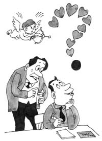 乙:“你听着:‘亲爱的,您是我的心上人,我俩是天生的一对。除了您,我谁也不爱……’”