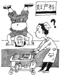 一产妇难产,医生也没有办法。做丈夫的得知后马上在走廊里拿起“大顶”来。“干什么?”过路的护士长质问他。“小孩子都喜欢看热闹,看见我这样子,以为是马戏团来了,他还不赶紧出来?”