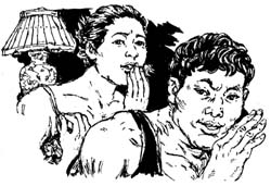 我们又躺下,可是哪里还睡得着,那女人的哭叫声一阵高过一阵,一阵比一阵凄惨,好像被男人打得满地打滚。偶尔,男人很威严地低吼一声,把女人的声音压下去。但很快,女人忍受不了男人的折磨,又像女鬼一样尖叫起来。