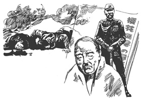 原来,在半个世纪前的那场侵华战争中,松下摩代扮演了一个极不光彩的角色!当时,他是一名大佐,先后在南京、苏州、上海等地参与残害无辜的中国人民。每当他杀害一个中国人时,都要将时间、地点以及被杀者的性别、姓名等记录在他从日本带来的这本《樱花凋零的季节》的扉页上。战后,他将这本书视作“功劳簿”带回日本。在此后的几十年中,他的军国主义侵略野心始终没有变化,时常取出这本书来看,心中油然产生一种满足感和得意感。他已经想好了,在他即将离开人世时,将这本书交给儿子松下玖男,让他继续传下去。因此,当他发现这本书陡然失踪时,心急如焚。