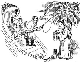 上得船来,渔姑便开门见山地向他讲明,登舟后还得继续对课,对得不好,就得自动下船,秀才满口应承。