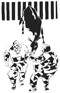 李六爷乐呵呵地牵着小毛驴儿离开,这才想起自己还没吃早饭,李六爷就把小毛驴儿拴到电线杆上去吃饭。刚坐下,就听到有人喊:“这是谁的毛驴儿?”李六爷一溜小跑地过来,见一个戴红袖箍的市容管理员黑着脸掏出一叠盖着大印的单据说,罚五十!李六爷问:“什么罚五十?”红袖箍说:“你的毛驴啃了绿草!这是人工种植的草皮,是美化环境的,啃了它就得罚款!”李六爷这才明白,城里的草也金贵。他说身上没钱。红袖箍说:“这是文件上规定的,没钱不行!”李六爷见红袖箍不肯通融,不禁怒火中烧,扬起手掌就往毛驴屁股上搧了两巴掌,骂道:“你也不是村干部,想到哪吃就到哪吃!”毛驴被打得又吼叫又蹦跳。打完,李六爷对红袖箍说:“这下子行了吧,我都教训了它,我的毛驴还给你唱了卡拉OK,跳了蹦迪,就饶了它吧。”红袖箍见李六爷挺逗,笑着说:“看你怪可怜的,款就不罚了,下不为例啊!”李六爷心里说,又一个下不为例,城里怎么那么多下不为例呢?