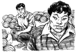 那天,科长弄来一批无籽西瓜要分发给局机关人员,让研究生去分一分。研究生拿出花名册,把西瓜按人名一堆堆分好贴上名字,最后还多了两个碰裂了缝的西瓜。科长手捧着茶杯,笑眯眯地看他怎么办。这研究生是何等聪明之人,知道科长在对他进行智力测试,他马上想到有这么一则趣闻:有个办事员分鸡蛋,最后多了两个碎鸡蛋,想扔掉,领导说他浪费;送给领导,又讲他拍马;自己拿走,指责他贪小。正在无所适从时,领导走过来,每堆鸡蛋上敲碎两个,事情就圆满解决了。现在的情况是何等相似,因此他不露声色地拿起两个好瓜,想逐一敲破,不料被科长一把拉住说:“小青年,你怎么能这样干呢?”然后又指了指破西瓜说:“拿去洗一洗,找把刀切一下,分给大家吃吧。”说完,意味深长地瞄了他一眼,踱着方步走了。研究生脸上顿时一阵红一阵白。