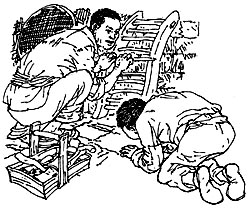 鲁常听了,心里想:这个谜是宋代才子苏东坡制作的,民间久已流传,谁人不知,谁人不晓。于是,他自编一谜解答道:“小小轮盘像只船,师傅摇橹徒儿牵;去时拉着纤绳走,回来摇橹师收还。”