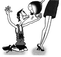 夫妇二人漫步于街道上,丈夫无视路面的标志,牵着妻子横穿马路,一辆急驶而过的汽车险些撞到他们。司机探出头来,大骂:“喂,笨蛋!”