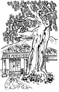 现今这株古柏铁骨铜皮,树身被千年风雨侵袭,皱折如同巨斧利刀雕琢过似的,苍劲有力,从琼台庙院子中破窗穿屋而出,顶天立地。每到春天东南风劲次,二杈直立云端的柏树枝在风中起舞作响,好像在向远在西北马嵬坡下的杨贵妃诉说唐伯还在想念你,感谢你曾经机智地解脱天台山民饥饿之苦……这千年老柏也成为唐伯的化身,大家都分外关心、爱护它,愿它永远不朽。