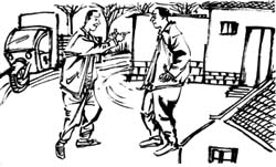 那天中午,三儿喝了几杯酒,头也有些晕,他坐在门口大路边歇息。