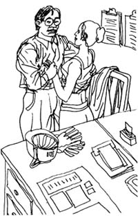 技术科里的小青年看着科长的新气象打趣说:“潘科长简直变了一个人,要不现在怎么流行首长配女秘书呢,男女搭配,干活不累!”