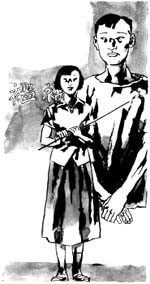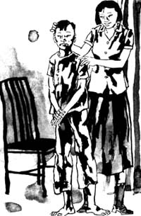 在派出所见到严海波时,他正蜷缩在派出所走廊里的条凳上打瞌睡。看见小梅老师,他眼里不由又露出了那种倔犟而仇视的目光,然后,缓缓地低下头去。
