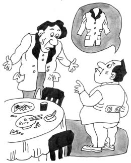 餐馆老板:“把你身上的大衣脱下来挂到墙上,不就可以遮住了吗?”