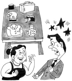 男人挑来挑去,没有一件满意的,总是摇摇头。
