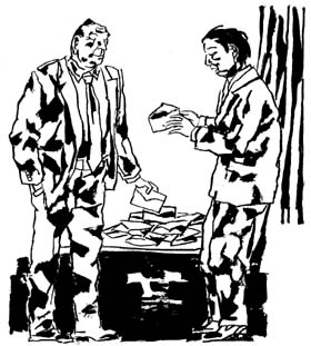 回家以后,甘局长的脸上泛起多日不见的红光。当夫人向他提及同事们送礼金的事儿时,酒意未消的甘局长脱口而出:“我在亲手送给每一位同事的请柬信封中,都夹有200元钱。”