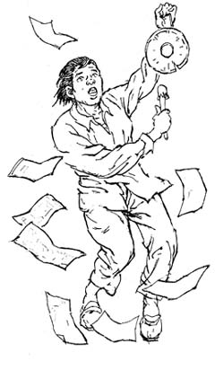 小儿子住的是老太太早年给他买的楼房,第四层。老太太到他家里取了两个月的钱,到第三个月,小儿媳妇说什么也不给了。老太太就回家取来早年收破烂用的一面铜锣,站在小儿子家的楼前,一边敲着铜锣,一边吆喝着要钱。小儿媳妇是个公务员,又在这楼里住了很久,大家都知道她是谁,她实在丢不起这个人,就气哼哼地把300块钱像天女散花一般从四楼上扔了下来。老太太也不跟她计较,挨着捡起了钱,查点了一下,就走了。