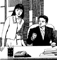 首先,我发现近段时间陈红频繁出入总经理室,一进去就半天不出来。一天,我有一极重要的文件需陈总签字,由于急我没有敲门,就直接向里间走去。当我推开门,我被眼前的这对男女那惊慌失措的动作惊呆了:陈总急忙从一张长沙发上坐起,显然刚才是躺在沙发上的。陈红站在沙发边,看来是听到脚步声后先于陈总从沙发上站起来的。幸亏我有极强的应变能力,我没有扭头就跑,也没有流露出憎恶的表情,我不动声色地将文件递过去,让陈总过目后签字。陈总的镇静是我有生以来从未见过的,刚刚发生过那事,又让下属逮个正着,但他竟像没事一样!陈红趁我给陈总递文件的当口溜走了。