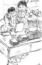 这天上午,阿山正在编造假文章,就听见门外有人喊:“阿山!邮件!签名!”