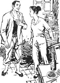 倏地,一道黑影飞来,小白脸“叭”地被掀下地。他惊恐地四周一望,却不见人影。他以为是桂枝在反抗,不由乐了:“嘿,你这个乡巴佬还有功夫哩,那就比武招亲吧!”小白脸自恃学过几路拳脚,又要扑过去。只见“啪”的一声,他的屁股又被人狠踢一脚,跌了个嘴啃泥。这时,桂枝瞥见树下立着一个黑影。