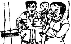 第二天,一路上我满心欢喜地想象着妻子与儿子看到礼物的高兴情景,妻子肯定不会再因为我没有升官而再闹别扭。跨进家门,我把买来的玩具枪和高级化妆品在儿子和妻子面前亮出来:“这高级化妆品是法国进口的,一千多元一套哦!这玩具冲锋枪也是最流行的,二百多元哩!”儿子看到玩具冲锋枪高兴极了,拿着玩具枪满屋子转,对着家什到处扫射。