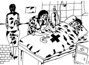 林杉在连队逗留的几天里,从没摘下过面具,吃住都由成茵专人陪伴,甚至在和边树说话时,也不摘面具。边树的老母有些不解地问边树:“你媳妇一天到晚都戴着那东西,不敢露面,是不是脸上有什么见不得人的地方?”边树笑着给老母解释:“妈,照片你都看了,还有什么不放心的?林杉戴面具,那是大城市姑娘追求时髦的举动。”老太太听了将信将疑,嘴里叨咕着:“忒漂亮的一个人,戴什么假面具呢,要戴也得我这张老脸戴!”