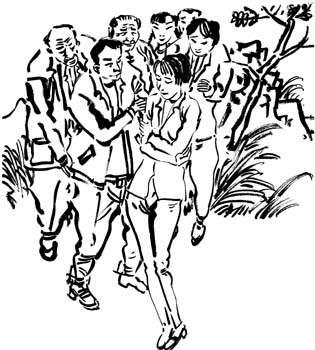 王进跑过来,扫了一眼躺在地上的月娥,赶紧一边掐月娥的人中,一边吩咐一位姑娘快去通知月娥家里人。不一会儿,孙富贵两口儿急匆匆赶来了。孙富贵扶起女儿,一个劲地呼唤月娥。这时孙月娥一声呻吟,睁开了眼睛,大伙见了又惊又喜,特别是孙富贵两口儿,那悬着的心,一下就落了下来。