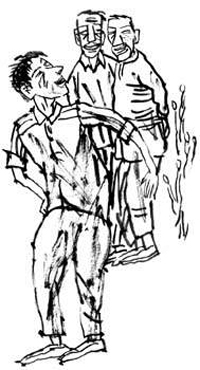 周大赖的哥哥是县农林局局长,刚好回家来看二弟,听见外边人声嘈杂,急忙来到门外问道:“为什么事吵到我家来了?”有人认得他说:“周局长,正好你回来了。你二弟经常到我们饭店白吃,街坊邻居的白吃也就算了,今天他领着一帮人白吃,我们饭店又不是慈善机构,他不但不给钱,还打伤我们老板。”周局长一听,又气又恨,没好气地对周大赖说:“二弟在外净丢丑,喝酒没钱硬要走。惹得众人后边追,好似野外一条狗。”