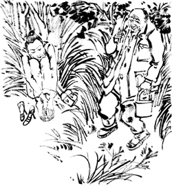 不到半个钟头,黄老汉把药找回来了。该外敷的捣碎敷上,该内服的捣汁喂服,不过一个多钟头,姑娘的眼睛就睁开了,眼仁乌亮亮,睫毛扑闪闪。黄老汉正为自己救了一个好姑娘而高兴呢,没想姑娘噌地坐了起来,盯着黄老汉冷冷地问道:“你看见我的东西了?”
