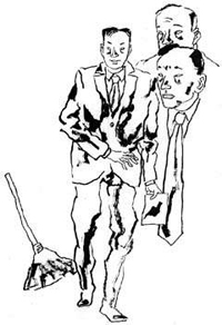 考官问了几个与专业风马牛不相及的问题,他都一一认真地作了回答。考官让他先出去等待通知。他转身向门外走去,经过门边那把横躺的扫帚时,他又瞥了一眼,心里想着不知考官对他回答的问题满意不满意,也就没在意这把扫帚,走出门外去等候消息了。