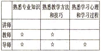 做一个拥有积极情感的导师,而不是简单的教师或讲师,是语文教师帮助学习者改善情绪状态必须遵循的根本原则。“导师”除了熟悉本专业知识和教学方法外,还要积极钻研并在教学中时刻关注学生内在的学习心理和学习过程,对学生学习中出现的情感问题等加以积极引导,以培养学生自主学习的能力。Jane Arnold(1989)把教师分为三个不同类型,即我们所谓的“导师”和传统意义上的“教师”及“讲师”,区别可列表如下: