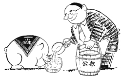 大凡局级单位,都不乏下属部门。实体也罢、公司也罢,无非都是进钱出钱的所在。他们的钱不是您的钱,但胜似您的钱。只要善于调动,灵活周旋,您便大有“钱途”。宾馆宴请、房屋装修、出国旅游、电器套购、乃至金屋藏娇、外地嫖妓,无不是花大钱的地方,单靠千儿八百死工资,就难免阮囊羞涩,有损局座的高大形象。损害了您的形象,也就是损害了本局的整体形象,俺们是不答应的。怎么办?就要靠变通办法将您的负担转化为本局的负担,将您的痛苦演化为大家的痛苦。要知道,像我们这些小职员,并不总是有机会为您局座分担痛苦的,那还不是俺们的幸福么?