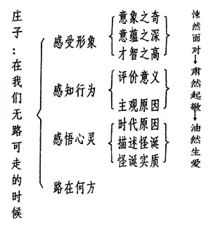 学生在阅读文本中逐渐感受庄子的形象、感知他的行为、感受他的心灵,并在不断的质疑和思辩中理解庄子的孤独和怪诞;在领会作者对庄子精神世界解读的同时也完成了对庄子人格与心灵的审美体验。学生对庄子的情感随着探索的不断深入从悚然面对升华到肃然起敬,最后油然生爱。通过对内容的整合和语言的品读与积累渐渐揭开这位天仙才子怪诞与孤独的面纱,同时领会了他“眼冷、心热”的实质。