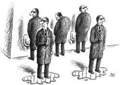 三、官架子是自个抖出来的。某些人虽然走捷径当了官,但不学无术腹中空空,不具备当领导的水平,这一点大概连自己也心知肚明,于是生怕人们看出他们的破绽,生怕群众瞧不起自己,便极力抖出一副官架子给人们看,想借此压服人。他们坐在主席台上,脸上写满了严肃和深沉;讲话作报告,拿腔拿调,故作高深;下级向他请示工作,他哼哼哈哈,推三拖四;部下出了差错,他恼羞成怒,疾言厉色;跟群众打个照面,绝不会先开口问候,熟人同学来访,绝不先伸手相握,似乎先开口先伸手就丢失了身份。