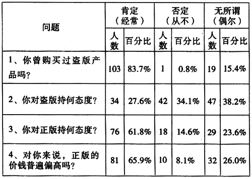 以下是我对我校(华中师范大学)附近学生及老师(总123人:其中老师6人,学生117人)抽样调查统计的结果。