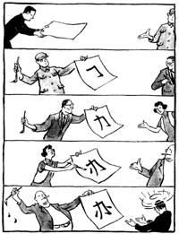 甲:你能不能给我弄一个出国护照和一张机票?最好是美国。(更小声地)不瞒你说,我在花旗银行存了两千多万美金。