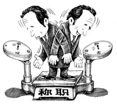[冯建成荐自《华商报》2005年4月16日/张滨图《左为不称职,右为职称高》]
