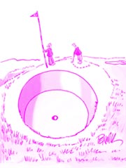他穿好潜水衣,带上工具跳进湖中。你猜他看到了什么?白茫茫的一片!全是高尔夫球,有成千上万只,这些球几乎全和新的差不多,全都是因为球手们失误打到湖中的。他回到岸上后,和球场经理商定以10美分一只的价格打捞并卖给球场,仅一天的时间他就捞了两千多只,收入相当于他一周工作的薪水。