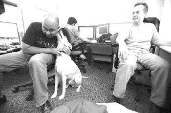 办公楼大厅的布置跟很多美国公司截然不同。大厅告示板上密密麻麻地贴着来自世界各地的剪报,走廊墙边靠着脚踏车,地上散放着橡胶健身球,很多员工聚集在走廊里讨论新程序的设计,边说边锻炼身体。