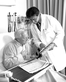 我们一到医院,门前一名护士迎上前来,笑着问道:“你们是不是早上打电话过来要求治疗风湿病的?”我点了点头,她带我们乘电梯到了6楼。一位40多岁的女大夫接待了我们。她先叫一旁的护士小姐用酒精将我膝关节上的疼痛部位擦拭干净,然后反复按摩,并询问我具体的疼痛情况,以及我的风湿病病史。接着,又非常详细地问了我年龄、饮食等问题。我本来只是膝关节有痛感,她却要检查我的全身。整整检查了一个多小时之后,她才开给我药方。我心里惊慌,这回没准儿要被人家宰了。