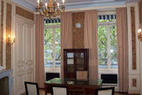 三楼的一隅,保留着普鲁斯特当年住过的几个房间。仅仅是几个,也就是另外有些房间被银行改作他用了,这是普鲁斯特故居管理员告诉我的。这位管理员态度亲切地给我一本小册子,陪我看了普鲁斯特宽敞的起居室和当年的餐厅(如今改为前厅)。两个客厅(Grand salon和Petit salon)门紧闭着,据她说“里面正在开会”。剩下的另一个房间,如今是她的办公室,也谢绝参观。