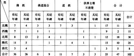药王山石刻共分三大类,造像碑、圆雕造像和石塔,下面是造像碑的统计表: