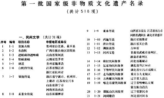 [文化科学]第一批国家级非物质文化遗产名录作者:佚名