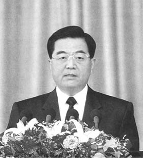 青藏铁路建成通车,是我国社会主义现代化建设取得的又一个伟大成就。在这里,我代表党中央、国务院,向青藏铁路建成通车,表示热烈的祝贺!向为青藏铁路建设作出突出贡献的全体建设者,表示崇高的敬意!向关心和支持青藏铁路建设的沿线各级党委、政府和各族干部群众、各有关方面人士、国际友人,表示衷心的感谢!