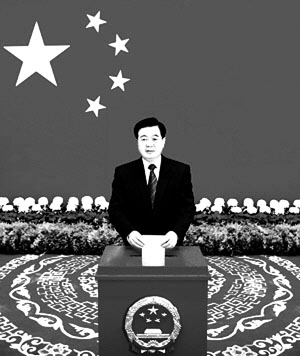 上午9时许,中共中央总书记、国家主席、中央军委主席胡锦涛来到怀仁堂投票站。胡锦涛认真听取了有关选举事项的说明,将选民证交给工作人员仔细核验,并领取了一张选票。随后,他在写票处认真填写,并走到票箱前郑重地投下选票。胡锦涛在投票后接受了记者采访。他说,人民代表大会制度是我国的根本政治制度,基层人大换届选举是我国政治生活当中的一件大事。我作为北京市西城区的一名选民,刚才参加了投票,行使了宪法赋予的民主权利。胡锦涛指出,人大代表责任重大。他希望当选的同志牢记广大选民的重托,密切联系群众,依法行使代表职权,切实维护群众利益,为推进改革开放和社会主义现代化建设作出新贡献。