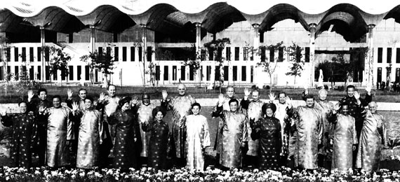 11月19日,亚太经合组织各成员领导人身穿越式传统服装,集体在越南首都河内国家会议中心西岛合影留念。新华社记者 樊如钧 摄