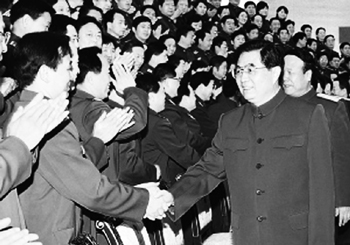 2006年12月8日,胡锦涛主席在北京会见出席军事科学院第六次党代会的全体代表。