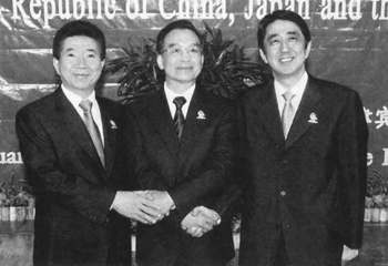 1月14日下午,第七次中国、日本、韩国领导人会议在宿务举行。中国国务院总理温家宝、日本首相安倍晋三和韩国总统卢武铉出席会议。温家宝主持了会议。