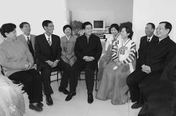 胡锦涛对困难群众的生产生活一直牵挂于心。他专门来到由棚户区改造而成的吉林市兴华街道幸福社区,并到低保户高中太家中看望。胡锦涛拉着他们夫妇俩的手深情地说,党和政府始终惦记着你们,一定会帮助你们克服暂时困难,你们的日子会好起来的。高中太的妻子张艳秋眼含热泪说,党和政府的关怀我们终身难忘,我们一定要尽自己的力量,回报社会、回报国家。胡锦涛认真察看了一站式服务大厅、社会保障服务站、残疾人康复站、社区扶贫小商店。他对社区干部说,要加强社区管理,改进社区服务,突出抓好零就业家庭就业援助工作,重点做好促进就业再就业和社会保障工作,切实为广大群众特别是困难群众办实事、解难事、做好事。胡锦涛还考察了大唐长春第二热电有限责任公司和长春市欧亚卖场,深入了解冬季供热和市场供应情况。