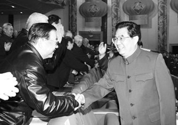 演出结束后,胡锦涛等高兴地走上舞台,与演职人员亲切握手,祝贺演出成功,祝愿全军老同志身体健康、阖家幸福。