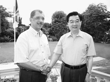 会谈后,胡锦涛和波汉巴共同出席两国经济技术、人力资源培训、教育、旅游等领域5个合作文件的签字仪式。