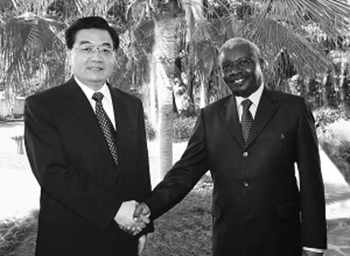 在谈到非洲形势和中非关系时,胡锦涛强调,中非关系的最大特点就是真诚友好、平等互利、团结合作、共同发展,通过务实合作,让中非人民得到实实在在的利益。中国从不把自己的意识形态、社会制度、发展模式强加于人,从不以牺牲他人利益为代价谋取自身利益。中方高度重视落实中非合作论坛北京峰会成果,将本着友好协商、务实高效的原则,根据非洲国家的实际需要,结合具体项目情况进行统筹规划,分步骤实施各项政策措施,着力增强非洲国家自主发展能力,让合作成果尽快惠及非洲人民。胡锦涛表示相信,在非洲各国不懈努力和国际社会支持下,非洲大陆一定会实现社会稳定和经济复兴。