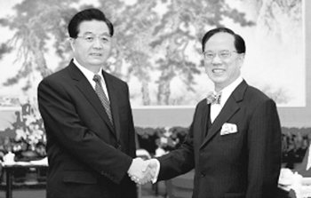 4月9日下午,国家主席胡锦涛在中南海会见了香港特别行政区行政长官曾荫权,同他进行了亲切的谈话。