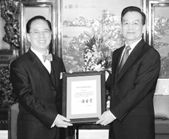 当天上午,国务院总理温家宝在中南海紫光阁会见了香港特别行政区行政长官曾荫权,并向曾荫权颁发了任命他为香港特别行政区第三任行政长官的国务院令。